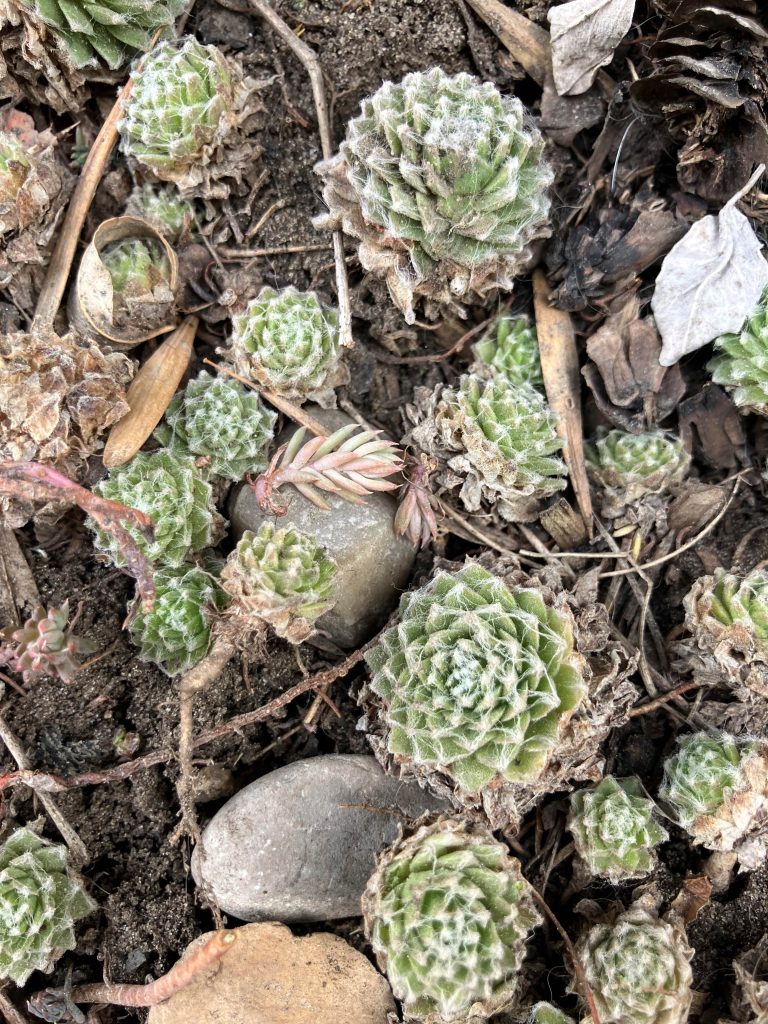 S. tectorum Purple, S. arachnoideum Cobweb Hen and chicks shown