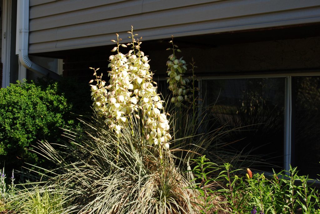 Yucca glauca is the native species growing wild in Saskatchewan and Alberta. All Yucca grow as a rosette with stiff, upright leaves. Yucca glauca and Y. filamentosa rarely have stems/trunks like their relatives in the tropic and sub tropic zones of the world.